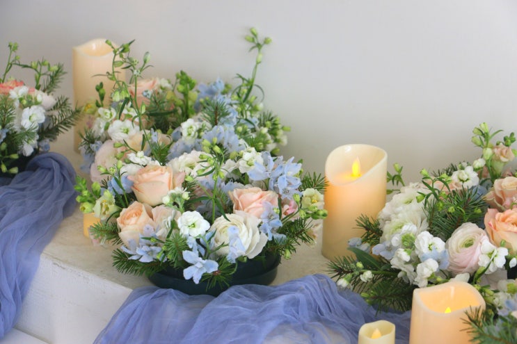 일상속에서 분위기를 확 바꿔주는 플라워 작품 '플라워리스 만들기' 이렇게 원을 그리듯 배치된 플라워리스는 공간에 자연스럽게 스며들며 조용히 분위기를 완성해줘요 국비지원 플로리스트 기초반 수업이였던 '플라워리스' 이번 수업에서는 부드러운 파스텔 톤의 꽃들을 이용해 테이블 위에 놓았을 때 가장 안정적으로 보이도록 플라워리스를 제작해 보았어요 플로리스트로 입문 기초반인데도 완성도가 높죠? 이날 꽃은 하늘색이 매력적인 미니델피늄, 하늘하늘한 꽃잎이 흩날리는 라넌큘러스, 달콤한 향기가 코끝에 스치는 스톡 등 다양하고 예쁜 소재를 사용했어요 :) 캔들과 패브릭을 함께 연출하면 다양한 공간에 활용....... <img src="https://blogthumb.pstatic.net/MjAyNjAxMjNfMTEg/MDAxNzY5MTUxNjYxOTUx.6ZkBb6LSOI1bTLGAR2Z1saqu5mdlBCmDVJYJvNJQ990g.ABSdsOEKliLIlTO2uG4uSfVZFlKWy-scjtsSdoWDSoEg.JPEG/IMG_7921.JPG?type=s3" />