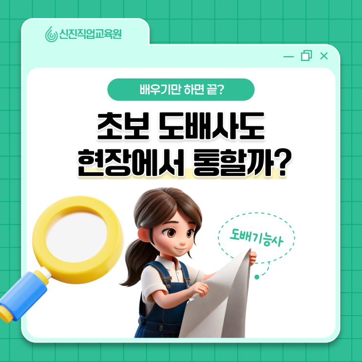 안녕하세요, 고용노동부 공식 인증 교육기관, 신진직업교육원입니다. 인테리어 도배 기술을 배우려는 분들이 가장 먼저 떠올리는 질문이 있습니다. “학원에서 배운 도배 기술, 실제 현장에서 바로 써먹을 수 있을까?” "현장가면 처음에는 벽지 뽑기, 풀사, 나르기만 한다던데… 처음부터는 못하는걸까? " 도배를 처음 준비하는 분들일수록 이 질문 앞에서 쉽게 결정을 내리지 못합니다. 결론부터 말씀드리면, 학원은 현장과 같을 수는 없습니다. 하지만 잘 가르치는 학원은, 현장에서 생길 변수를 ‘대비’하게 만들어 줍니다. 이번 포스팅에서는 인테리어 도배 기술을 제대로 배우기 위해 학원이 왜 중요한지 살펴보겠습니다. <함....... <img src="https://blogthumb.pstatic.net/MjAyNjAxMzBfNjQg/MDAxNzY5NzQ3NTE0MjI5.Q6MEHzDuWbVOOk9AZiUtu72SdYE91xheJRZKf4DpDDYg.hPcRCDDKlvk4eZ4-qj5Tc3JQUw5mJfx8uFf3cY2ahAgg.PNG/%B5%B5%B9%E8%28%BF%A9%C4%B3%29_%282%29.png?type=s3" />