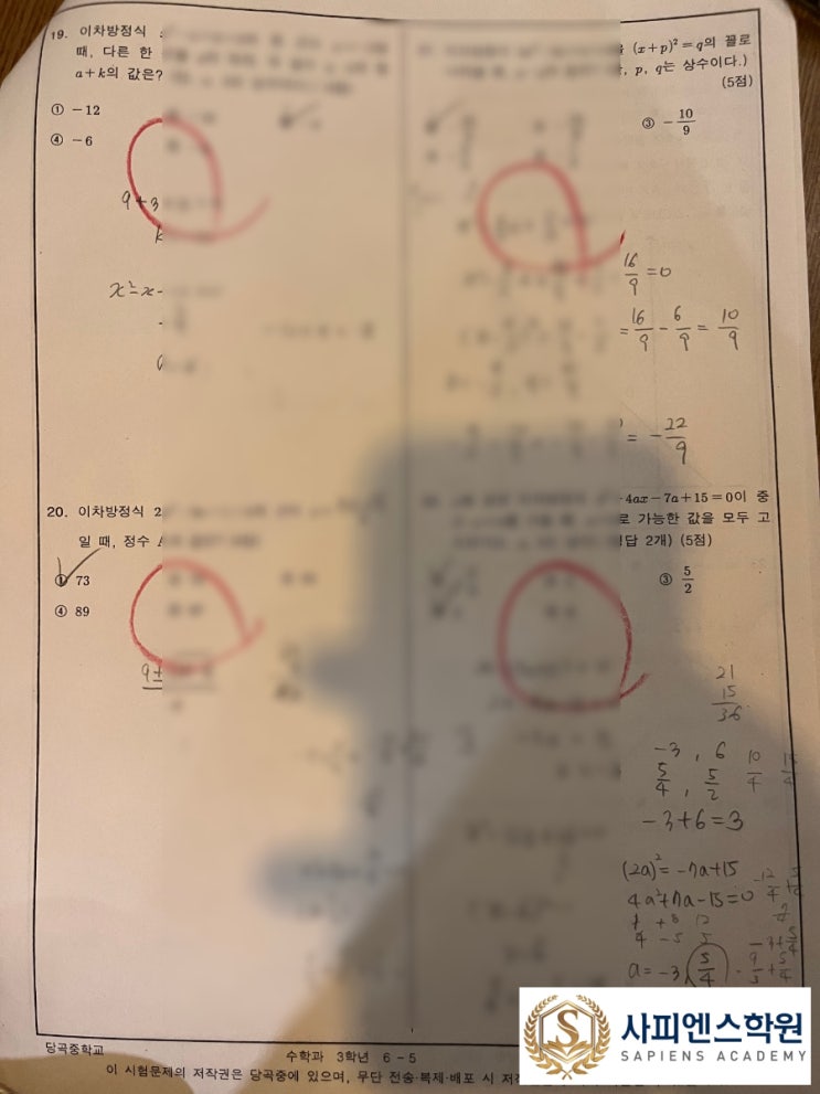 [당곡중 수학학원] 동작구 사피엔스학원을 다니고 중간시험 100점을 받을 수 있었던 이유는?