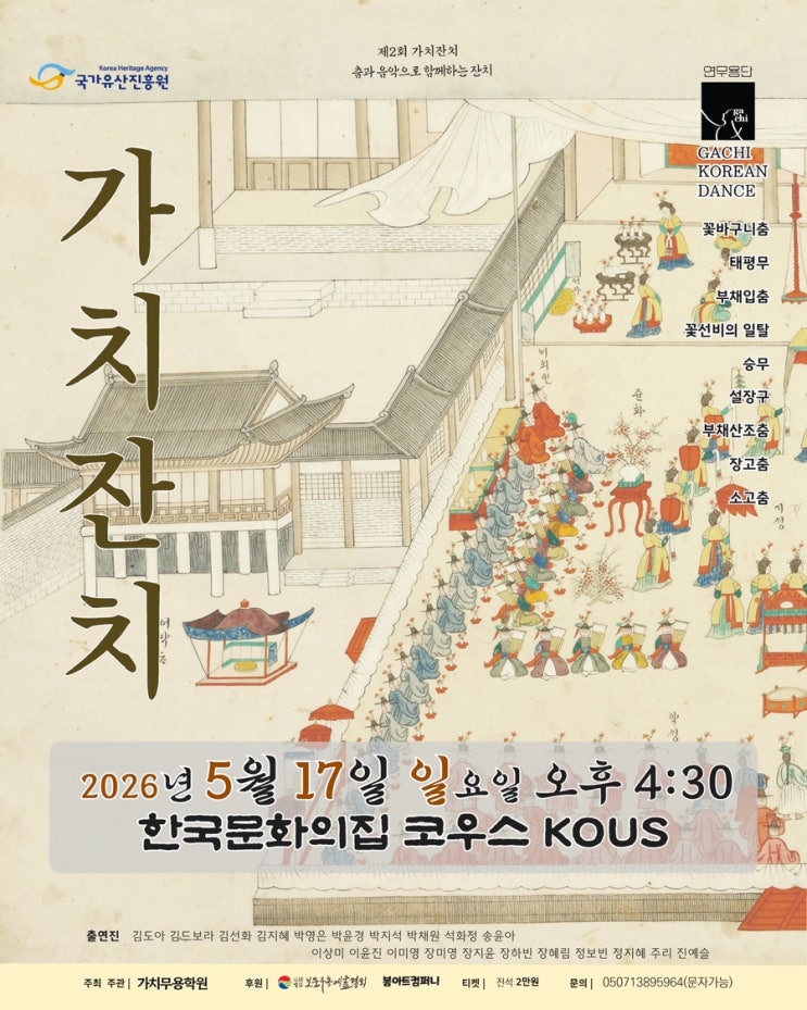 내일 오픈! 가치잔치, 드디어 공개합니다 올해도 무대 위에서 펼쳐질 우리의 잔치! 가치 있게 ,그리고 차곡차곡 쌓아온 우리의 시간과 노력이 무대에서 어떻게 펼쳐질지 기대해주시기 바랍니다 그 순간을 함께해주세요 ✨ 제 2회 가치잔치 2026년 5월 17일 (일) 오후 4:30 한국문화의집 코우스 티켓 오픈 4월 30일 (목) 오후 12:00 예스24 티켓 에서 예매가능 합니다 https://ticket.yes24.com/Perf/58023 <img src="https://blogthumb.pstatic.net/MjAyNjA0MjlfNzkg/MDAxNzc3NDM0OTYwNzcz.Ks5Col50FphoQ_FRO59jZt2eLUBEqVQb02MtpWHjgDgg.F3OGzD6O2seT2s4CdgwcIZkEv30ZQ8lt5ZTWadIALaIg.JPEG/insta%B0%A1%C4%A1%C0%DC%C4%A1_%A3%A82%A3%A9.jpg?type=s3" />