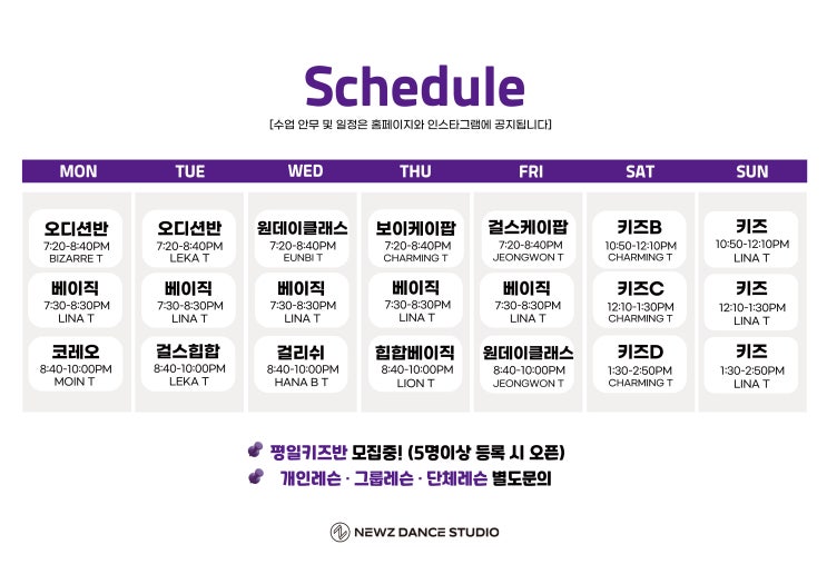 2026년 1학기 아스터영어학원 중고등 시간표 공지
