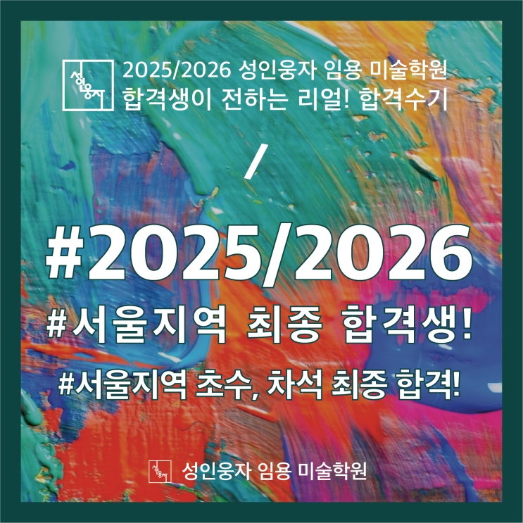 중등 임용 미술 <서울지역> 초수로 차석 합격생 선생님의 합격수기 & 시험작 소개! 안녕하세요 :) 미술 임용 전문학원 노량진 성인웅자 임용 미술학원입니다. 오늘은 이번 2026학년도, 서울지역에서 초수에 무려 차석!!!!으로 최종합격 하신 선생님의 합격수기를 가져왔습니다! 게다가 변별력이 높은 서울지역에서 실기 26점! 이라는 고득점으로 최종 합격까지! 합격수기와 함께 합격하신 선생님의 합격작과 합격 복기 및 시험작까지 소개하도록 하겠습니다. 이번 합격수기 주인공 선생님의 1차 성적은 1차 컷 + 기준으로 0~4점 사이에 점수를 받으셨습니다. 1차 점수가 1차 컷 + 기준으로 0~4점인 경우에는 대부분 1배수(선발인원)에....... <img src="https://blogthumb.pstatic.net/MjAyNjAyMTBfMjUz/MDAxNzcwNzA2MTQ1Nzkw.tluDBu9-KUQQPh4rsrV4VMQ9y0ifZ5t8uMAHeL5btAIg.FZVRAEm1lPK_djnFGMnPQccg183UckrsZcEmWgHXYpcg.PNG/%C7%D5%B0%DD%BC%F6%B1%E2_%B9%E8%B3%CA.png?type=s3" />
