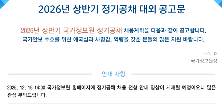 [7급 공채] 국정원 정기공채 안내 영상 안내