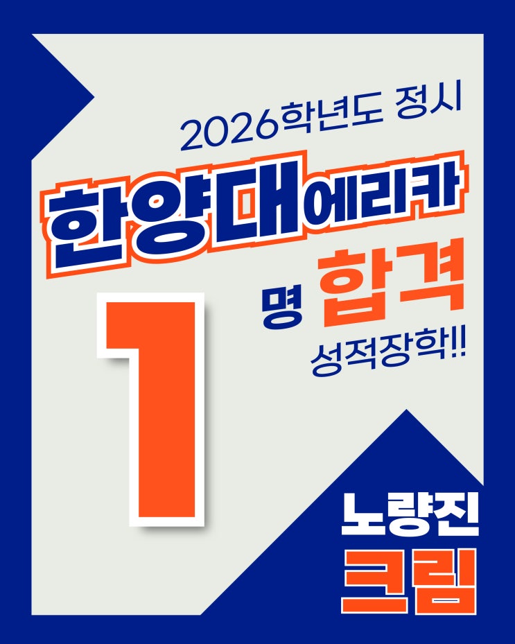 2026학년도 크림 합격자 한양대학교(에리카) 2026학년도 정시 1명 합격!! 안녕하세요. 동작구 노량진역 "노량진 크림 미술학원"입니다. 노량진 크림 미술학원 서울 경기 주요대학 합격 소식 전해드립니다~!! 2026학년도 ◇ 한양대학교(에리카) 합격 ◇ 1명 합격! [ 오직 크림 미술학원 만의 합격자임을 알려드립니다 ] 관악&동작 통합 합격자 명단 - 노량진 크림 미술학원 입시 커리큘럼 노량진 크림 미술 학원만의 체계적인 커리큘럼을 통해 탄탄한 기본기를 다지고 개개인에 맞춘 수업 진도를 통해 실력을 향상시킬 수 있습니다. #기초드로잉 수업 컨투어 드로잉과 투시, 명도와 채도, 빛과 그림자, 기본 도형에 대한 이론 수업....... <img src="https://blogthumb.pstatic.net/MjAyNjAxMzBfNTkg/MDAxNzY5NzU4NDAxOTUx.3f4hZ-3V-MZiIV7ftqjJxOs0ZRWj-9vMrYFfG5eJmQkg.p1Xa-v-HQKvzOmJTP-kEJNIvcsb5_SoeDAcrm1TTiqMg.JPEG/KakaoTalk_20260130_163241751.jpg?type=s3" />