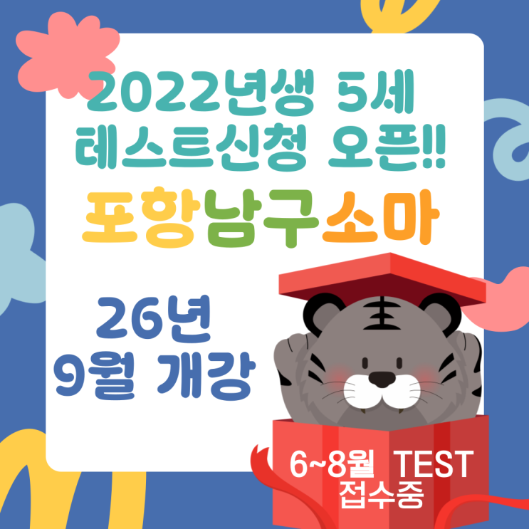 포항남구소마사고력수학 5세들의 레벨테스트 신청이 오픈되었습니다!! 요일별 테스트 인원이 제한되므로 미리미리 신청해주세요~ 6세~10세도! 당연히 test 열려있으니 언제든 학원으로 문의주세요. 소마사고력수학은 단순 문제풀이가 아니라, 아이의 생각하는 힘을 키우는 진짜 수업을 추구합니다. 우리 아이가 수학을 두려워하지 않고, 즐기면서 성장할 수 있도록 함께 준비해요! 궁금한 점은 언제든지 문의 주세요 포항남구소마사고력수학은 유아, 예비초등, 초등학생, 수학에 자신감을 가지고 어려운 문제를 풀고싶은 친구들 경시대회나 영재원을 준비하는 친구들을 위한 수업을 하고 있습니다. 포항남구 소마사고력수학 경북 포항시 남구....... <img src="https://blogthumb.pstatic.net/MjAyNjAzMDNfMjE0/MDAxNzcyNDY3NDg4MjE0.bnSNHJL_v6NAEiAtShhuKGkqn43PzXXNxInA-WkbetEg.zDRmjqPPnO-Y_hIU4w4x9YzEmfISEc4ol6SxK_zrJxMg.PNG/001.png?type=s3" />