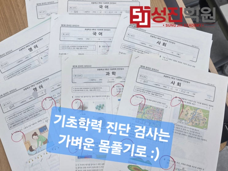 강서초 학생, 학부모님이라면 주목! 논리적 문제풀이 능력이 대입까지 이어지는 학습력입니다. 2022 개정 교육과정 잘 모르셔도 내신과 진로 역량, 그리고 자기주도성이 강조된 교육 과정이라는 것 하나 만은 반드시 알고 계셔야 합니다! 막연한 교육 개정 과정과 변화하는 입시제도 속 범람하는 정보들에 두려움을 갖고 계시다면 신월동 성진학원에 상담을 요청하세요! 언제나 환영합니다. 오늘은 기초학력 진단검사를 대비하는 가벼운 몸풀기를 한 성진학원 초등부 이야기를 전합니다. 기초학력 진단검사 뭐야? 매년 3월 초, 이전 학년 교육과정의 최소 성추 수준 도달 여부를 평가하여 학습 부진을 예방하고 보정하는 한국교육과정 평가원이 주....... <img src="https://blogthumb.pstatic.net/MjAyNjAzMDlfMjky/MDAxNzczMDM2NTY4NzM4.ZoKYQxdcmc1kLvKYjkMIvPQBjcHcvPDQE4N-h51DhtIg.pYDbDNjfOTRs3VG6raIUiFu22ZXrSdt6C5Cy9ACJ3SYg.JPEG/20260309_143834.jpg?type=s3" />