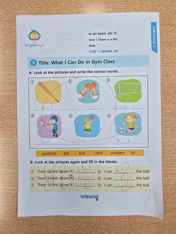 안녕하세요? SCC영수학원입니다. 초등 영어 교육에서 가장 중요한 것은 단순히 단어를 많이 외우는 것이 아니라 읽기, 쓰기, 말하기를 균형 있게 익히는 것입니다. SCC 영수학원에서는 이러한 목표를 위해 잉글리시아이(EnglishEye) 포트폴리오 학습을 진행하고 있습니다. 한 달 동안 배운 영어 내용을 정리하고 직접 발표까지 해보는 활동으로, 학생들의 영어 글쓰기와 말하기 자신감을 키워주는 학습 방법입니다. 잉글리시아이 수업은 보통 한 달 동안 하나의 유닛(Unit)을 중심으로 진행됩니다. 먼저 그림과 단어를 연결하면서 어휘를 익히고, 간단한 문장을 만들어 보는 활동을 합니다. 예를 들어 체육 활동을 주제로 bat, sneakers, goalpos....... <img src="https://blogthumb.pstatic.net/MjAyNjAzMTZfMjY4/MDAxNzczNjM2MTQ4NjIz.G1TZQZ5bZs-CR1WlcdXnUrijBWDjsX4DNPOHDdwzUUwg.qNbzuss8Gg_gVJKas7q0xWMFCErrX5RRGcX1UXQ8LdIg.JPEG/KakaoTalk_20260316_134137354.jpg?type=s3" />