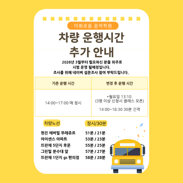 2026년 3월부터 차량 추가 운행 시작! 학원 등·하원 더 편해집니다