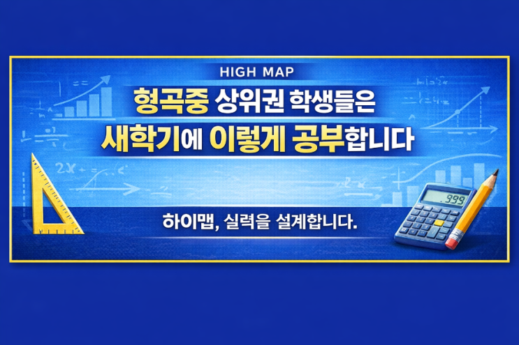 형곡중 수학, 학년별로 이렇게 준비하면 성적이 달라집니다 – 하이맵수학이 제시하는 중1·중2·중3 구체 전략 안녕하세요. 구미 수학의 본진, 하이맵수학입니다. 같은 “열심히”라도 방향이 맞지 않으면 성적은 오르지 않습니다. 특히 형곡중학교 학생들은 진도 속도 + 서술형 비중 + 시험 난이도까지 고려해서 학년별로 다른 전략이 필요합니다. 이번 글에서는 실제 성적이 오르는 공부 방법을 기준으로 학년별 구체적인 학습 로드맵을 안내드립니다. ■ 중1 전략 (가장 중요합니다) 목표 : 계산력 + 식 정리 습관 중1에서 무너지면 중2 함수에서 바로 무너집니다. <반드시 잡아야 할 핵심> ① 계산 정확도 부호 실수 분수 계산 괄호 처....... <img src="https://blogthumb.pstatic.net/MjAyNjAyMjdfMjEw/MDAxNzcyMTIxMzk2ODc1.D_fPiIO4Ipi211p_5fp4aUrO5F8m1DXlQciRSkKJ6yYg.e3jZ8Djnnsk2Cjqxxs4wPie0FELaFwoG9Il0oz8V5z4g.PNG/900%A3%DFfile%A3%DF0000000055ec72068245925a59d26e59.png?type=s3" />