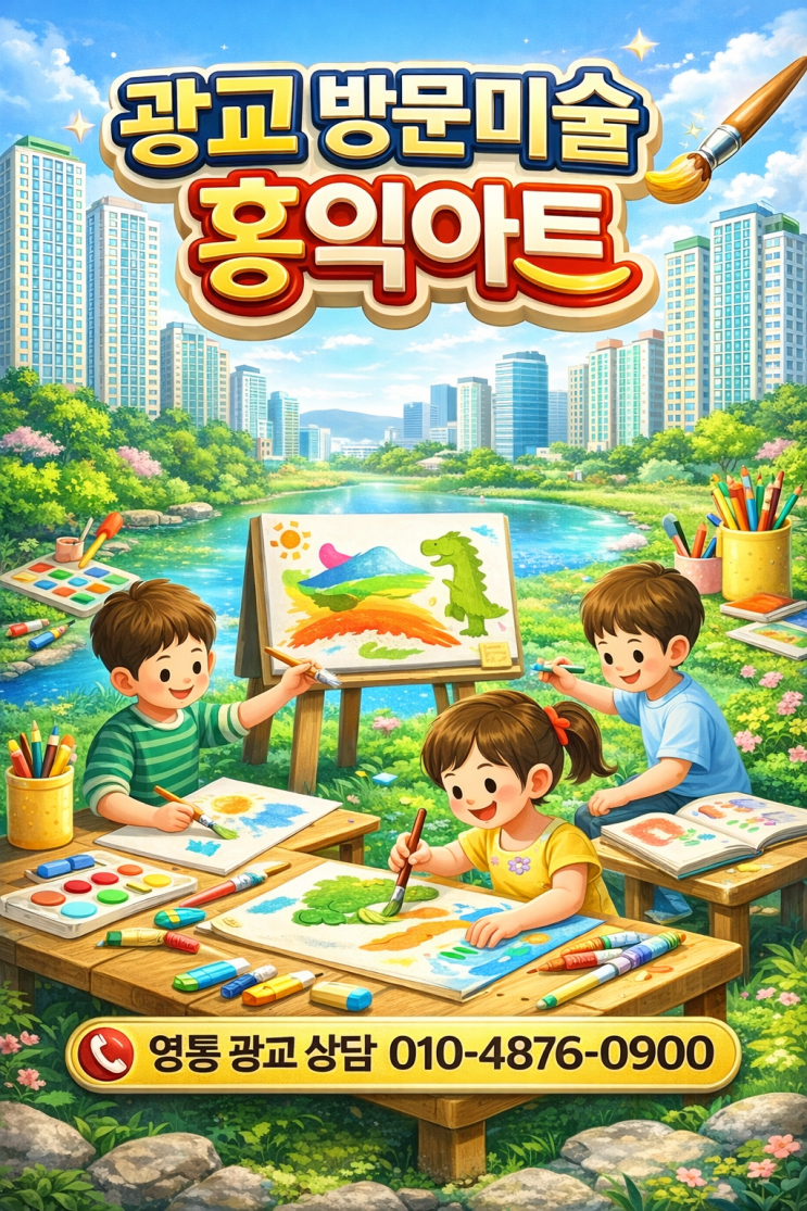 광교신도시는 수원에서도 교육 환경이 좋은 지역으로 알려져 있습니다. 특히 광교중앙역 주변 학군은 어린 자녀를 둔 가정이 많은 지역입니다. 요즘 많은 학부모님들이 영유아 창의교육과 예술교육에 관심을 갖고 있습니다. 그 중에서도 유아 창의미술은 아이들의 두뇌 발달과 감성 발달에 매우 중요한 교육입니다. 그래서 오늘은 광교 영유아 · 유아 창의미술 방문수업 회원모집 안내를 드립니다. 영유아 창의미술이 중요한 이유 영유아 시기는 아이들의 상상력과 창의력이 가장 활발하게 성장하는 시기입니다. 이 시기에 미술 활동을 하면 창의력 발달 표현력 향상 관찰력 성장 집중력 향상 등 다양한 능력이 자연스럽게 발달합니다. 특히 유아....... <img src="https://blogthumb.pstatic.net/MjAyNjAzMTNfMjU4/MDAxNzczNDA2MDA1NjUz.hMAyNAC6T3nVGnxJjvbR-n4etXlFNFqD9ny8aGP6xyIg.L6YViNPZmwDRVlmOn8y0Mc3Z2jLMo2E5Pn-IJOIDvgUg.PNG/%B1%A4%B1%B3.png?type=s3" />