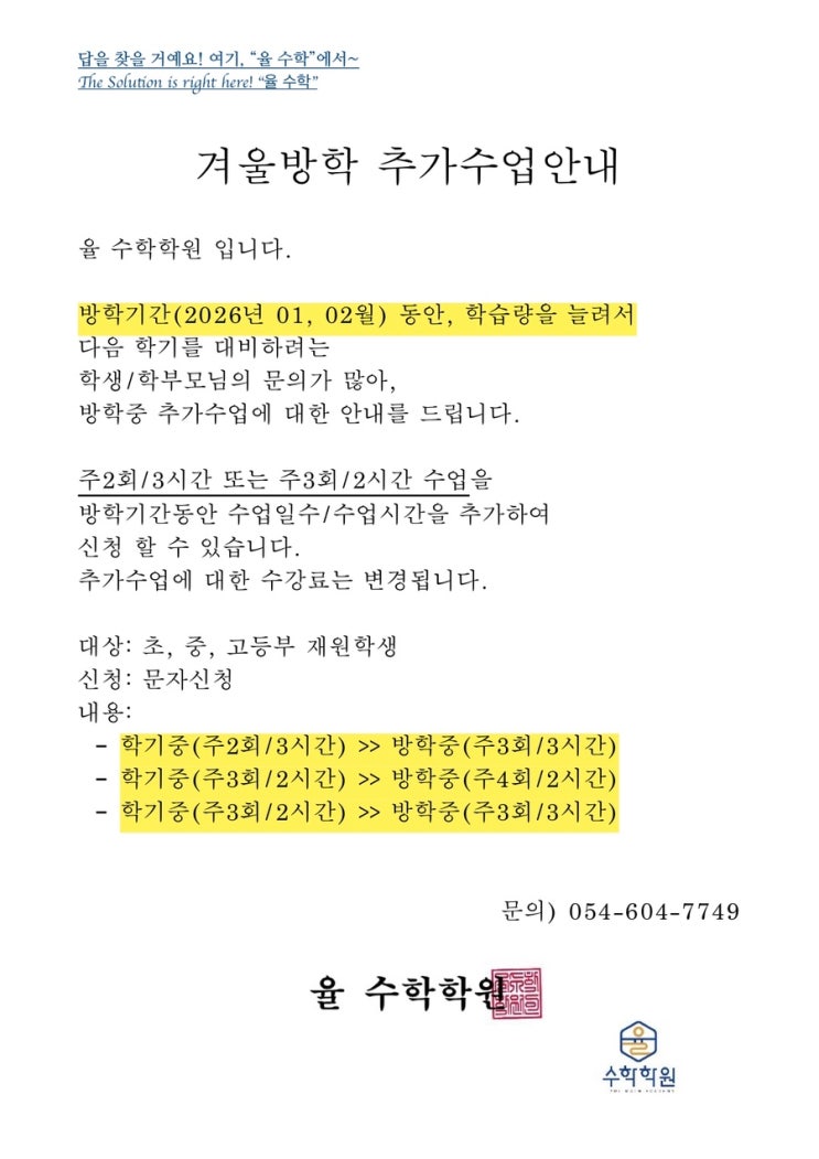 겨울방학 추가수업