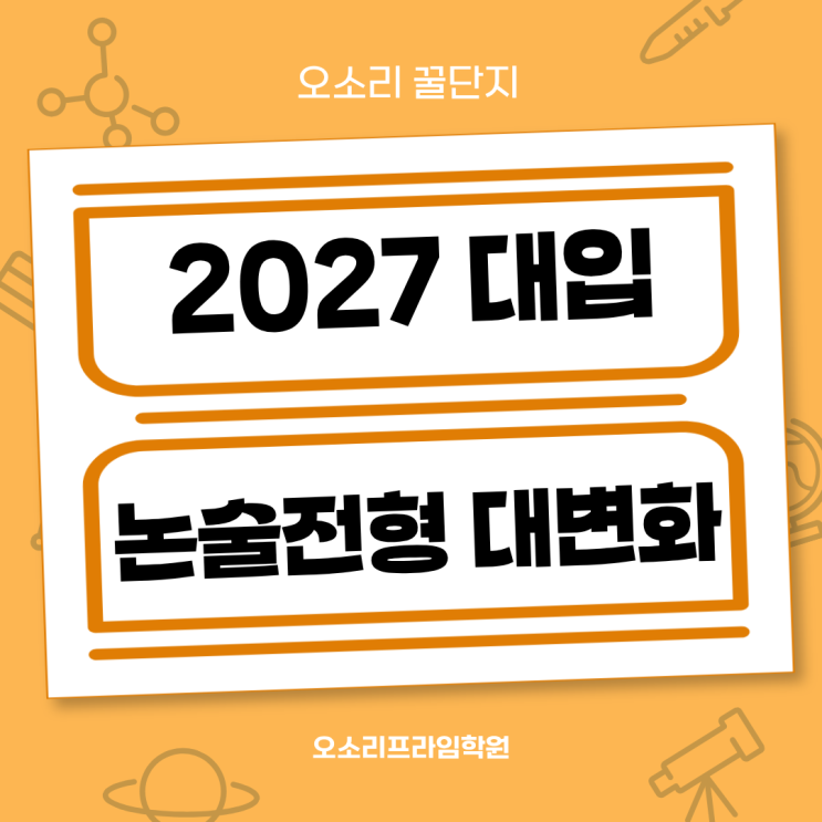 안녕하세요~ 오소리프라임학원입니다! 2027 대입에서 논술전형이 크게 바뀌는데요. 2027학년도 대입에서는 논술전형 구조 자체가 크게 변화합니다. 일부 대학은 새로운 논술 유형을 신설했고 일부 대학은 과학 논술을 강화했습니다. 또한 논술 성적 100%로 선발하는 대학도 늘어나면서 논술전형의 전략도 달라지고 있습니다. 이제는 단순히 논술을 준비할지의 문제가 아니라 어떤 대학의 어떤 논술 유형을 준비할 것인가 이 부분이 훨씬 중요해졌습니다. 중앙대 창의형 논술 신설 이번 변화에서 가장 눈에 띄는 대학은 중앙대학교다. 중앙대는 기존 논술전형을 일반형과 창의형으로 분리했다. 창의형 논술 특징 수능 최저학력기준 없음 사고력 중....... <img src="https://blogthumb.pstatic.net/MjAyNjAzMTFfMjMx/MDAxNzczMjE4MDU3OTk4.anedtS4tndZBrfUks8y_BQGY2XY8WDhNp7OHfMlN9vog.9nwV69_ADPlMLtbMRF4R7aw8pKtxJWYigZ2RkZuT4R8g.PNG/%BA%ED%B7%CE%B1%D7_%286%29.png?type=s3" />