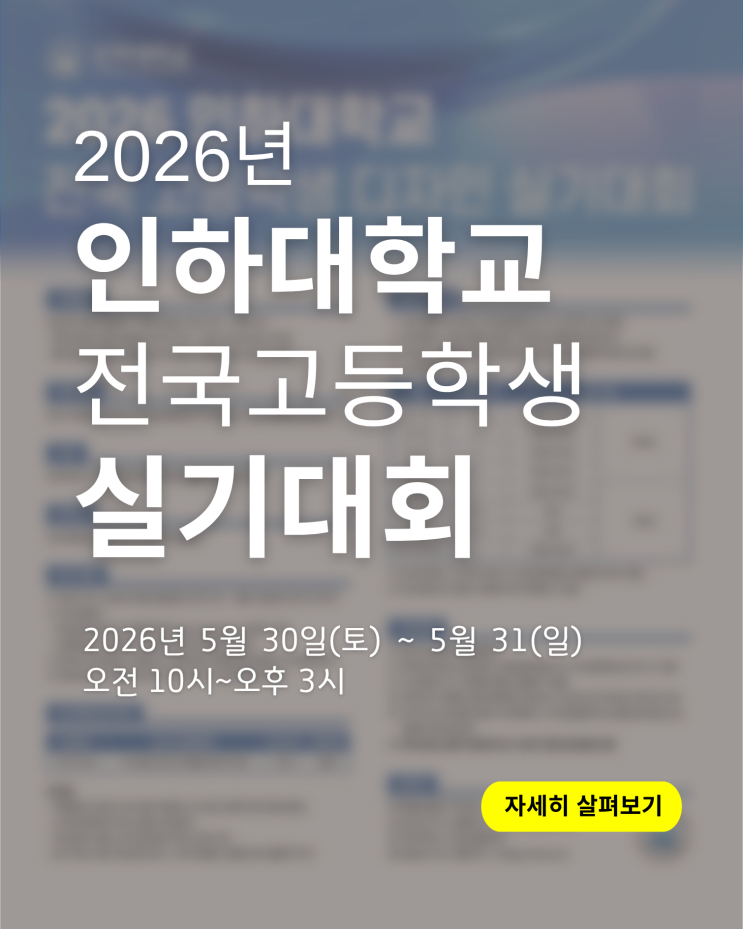 안녕하세요 :) 구로미술학원 창조의아침 서울대캠퍼스입니다! 오늘 구로미술학원에서는 디자인 미대입시를 준비하는 학생들을 위한 실기대회 소식을 소개해 드리려고 하는데요! 바로 2026 인하대학교 전국 고등학생 디자인 실기대회 입니다! 인하대 미술대학에 관심 있는 학생들이라면 꼭 도전해 볼만한 대회라 핵심만 깔끔하게 정리해 드릴게요! 2026 인하대학교 디자인 실기대회란? 인하대학교에서 주최하는 디자인 실기대회로 디자인 계열을 희망하는 학생들이 실기 경험을 쌓을 수 있는 대표적인 대회 중 하나입니다. 특히 ✔ 디자인 입시를 준비하는 학생 ✔ 실기 시험 분위기를 미리 경험해 보고 싶은 학생 에게 좋은 기회....... <img src="https://blogthumb.pstatic.net/MjAyNjA0MDdfMjg3/MDAxNzc1NTQ2MjUzMTM4.G8VHyMqQSgsfhBNBYjF26FBo0wwRD_F56n-7KrzXlzsg.D0FsmQPQ3VHD3mTJTd4P9yd5_ATeejqV8YXHqpHXwxEg.PNG/1.png?type=s3" />