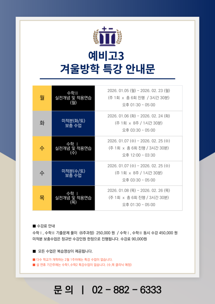 2026년 겨울방학 예비고3 특강안내