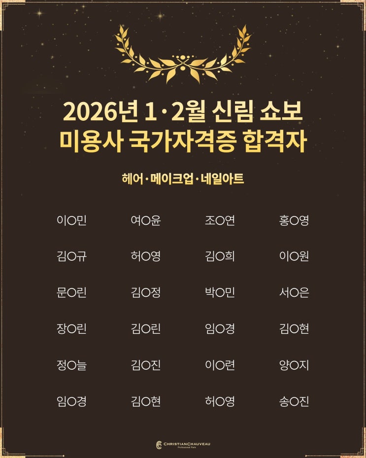 미용자격증 합격률 높은 학원 특징 | 신림미용학원 2026년 자격증 합격자