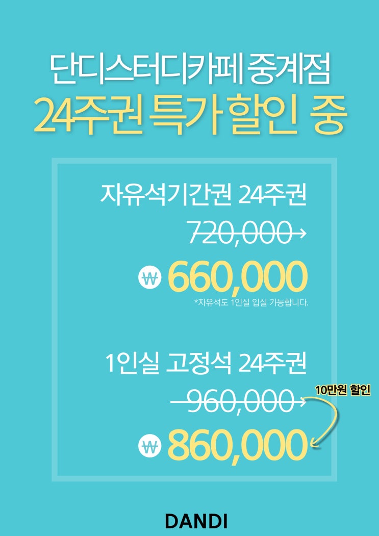 중계동1등, 단디스터디카페 중계점 10만원 할인 진행 중!(장기권 특가 이벤트)