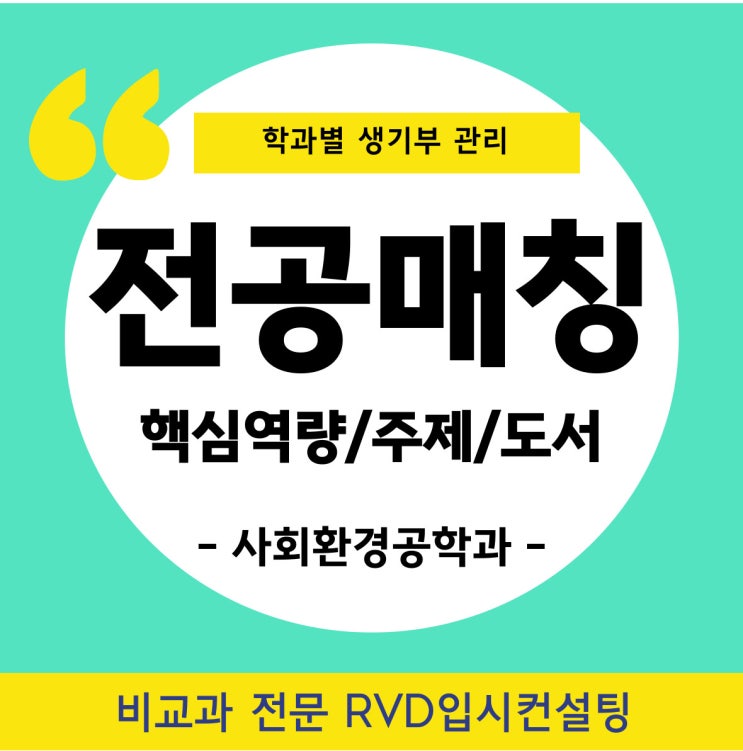 안녕하세요! 수험생의 6관왕을 응원하는 RVD입시컨설팅입니다. 전공 선택은 단순히 성적에 맞추는 것이 아니라, 나의 성향과 학습 역량, 진로 방향이 함께 고려되어야 하는 중요한 결정이라고 생각합니다. 그리고 각 대학별 학과 설명을 확인해 보시면, 학과마다 요구하는 핵심역량과 준비 방향은 분명한 차이가 있습니다. 이 기준을 이해하고 접근하면, 고등학교 생활기록부와 학습 설계의 방향도 훨씬 구체적으로 잡을 수 있습니다. ^^ 그래서 RVD입시컨설팅에서 학과 별 핵심역량을 바탕으로 전공 준비에 필요한 탐구 방향을 정리해 보았습니다. 탐구 주제와 추천 도서를 함께 참고해 전공 이해를 체계적으로 넓혀보시기 바랍니다. 사회환경공....... <img src="https://blogthumb.pstatic.net/MjAyNjAzMDJfMTk0/MDAxNzcyNDIwMjcyNTAx.RX3ZQHyOoYDsxWT1Qek0QgABY6_WqrU0J1uDJKMyrwIg.vevVLs82FJuebllS4pKivcWlwT3qkaPJcS0W56AMfGEg.JPEG/%C0%DA%BC%D2%BC%AD-%C0%CC%B9%CC%C1%F6-010_%2812%29.jpg?type=s3" />