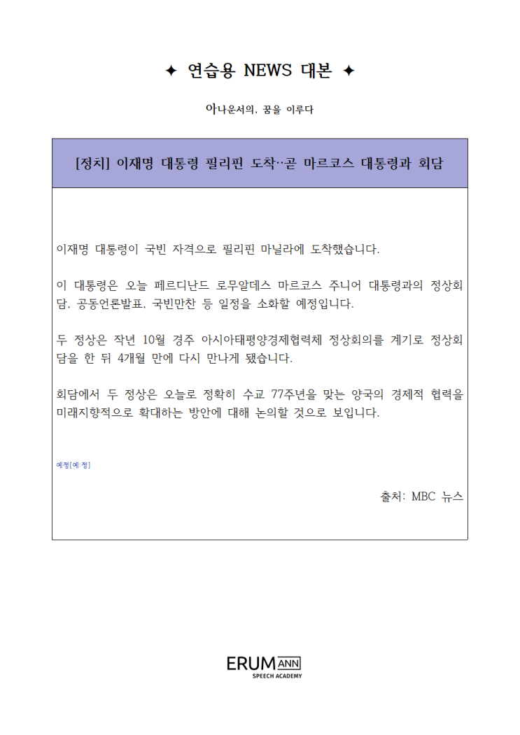 [뉴스대본] "이룸의 2026년 3월 1주차" 연습용 NEWS 대본