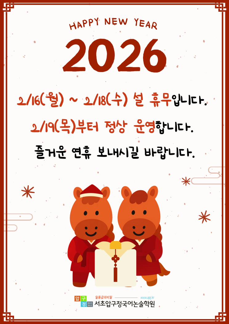 2026년 설 연휴 학원 휴무 안내
