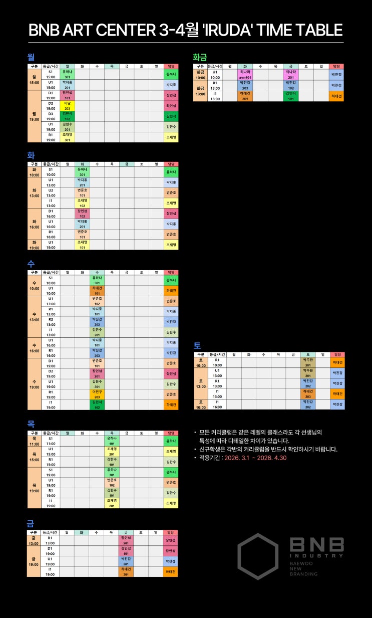 안녕하세요 배우앤배움 운영팀입니다. 2026 3-4월 타임테이블 입니다. (3월 4일 업데이트) ✓ 정기 오디션, CF, 광고, 드라마 캐스팅 ✓ 배우 매니지먼트 시스템 배우앤배움 아트센터 ✓ 체계적인 연기 트레이닝 ✓ 국내 중대형 기획사 40여곳의 위탁교육 배우앤배움 아트센터 ✓ 아카데미의 <교육> ✓ 에이젼시의 <캐스팅> ✓ 매니지먼트의 <학생관리> 3가지 프로배우 양성시스템 배우앤배움 아트센터 ✔️신인배우가 되는 길! ✔️ 성인 연기학원을 고민중이시라면 ✔️ 배우가 되는 길을 찾고 계신다면 강남연기학원 배우앤배움 아트센터에서 배우의 꿈을 실현해보세요! 650평 규모의 강남 성인방송연기학원 배우앤배움 아....... <img src="https://blogthumb.pstatic.net/MjAyNjAzMDRfNDQg/MDAxNzcyNjAxNzM0MTAz.LNc264dbyZy-cZVDz2T4qJbh6eoaNdfaMZ7XP-r67i4g.P8vJwp_RNimSed3dy9oQnIo0eLIrCK34sHkKTM3KDJMg.JPEG/2026_3-4_%C0%CC%B7%E7%B4%D9_%C5%B8%C0%D3%C5%D7%C0%CC%BA%ED.jpg?type=s3" />