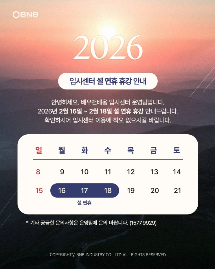 [휴강안내] 배우앤배움 입시센터 설 연휴 휴강 안내