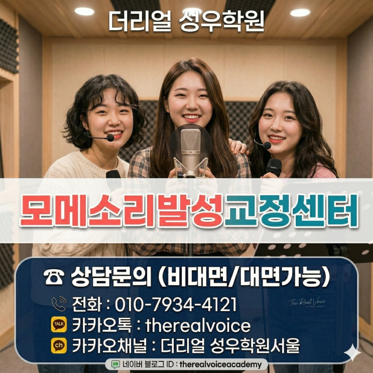 개포동발음학원, 나이와 직종에 맞는 맞춤형 발성 교정 서비스 발음이 꼬여서 고민인가요? 중요한 발표를 앞두고 목소리가 떨려 걱정이신가요? 단순한 말하기를 넘어 신뢰감을 주는 목소리는 현대인의 강력한 무기입니다. 나에게 딱 맞는 발성 솔루션 사람마다 성대 구조가 다르고 직업적 특성도 모두 다릅니다. 더리얼성우학원과 모메소리발성교정센터는 이 점에 주목했습니다. 초등학생의 올바른 발음 습관부터 CEO의 무게감 있는 스피치까지, 연령별·직종별로 세분화된 커리큘럼을 제공합니다. 왜 이곳이어야 할까요? 1. 현직 성우진의 밀착 코칭 귀에 꽂히는 발음의 비결, 전문 성우의 노하우를 통해 확실하게 교정해 드립니다. 2. 과학적인....... <img src="https://blogthumb.pstatic.net/MjAyNjAzMjhfMTA2/MDAxNzc0NjY5MTQ0NDY2.lplTpUm2aMmUqxOms-Bpzp9JbTav2rVitp5OZOfrqHgg.LYrbvyEQWgX2hQaihldAhmKcal0cLj0Bnri50aAhmb4g.PNG/%BB%E7%C1%F81_%288%29.png?type=s3" />