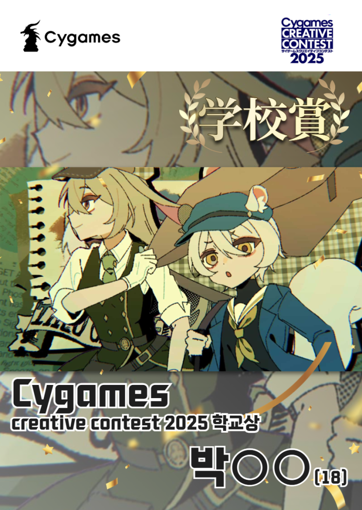 안녕하세요! 노 프랜차이즈 온리원! 씨존만화학원 입니다. 그동안 씨존만화학원 학생들의 사이게임즈 크리에이티브 콘테스트 2025 참가 소식을 알려드렸는데요! 지난 2월 17일 드디어 수상 작품들의 발표가 있었습니다! 멋진 작품들 가운데 씨존만화학원에 재원 중인 고교 3학년 박○○ 학생의 애니메이션 작품 <Mystery in Forest> 가 학교상을 수상하였습니다!! 대학생들을 대상으로 하는 공모전에서 올해는 최종 선발까지 4명의 재원생들이 남았던 만큼 예년보다 더욱 성장한 학생들의 실력과 열기에 매우 기쁩니다! 결과를 밑거름 삼아 더욱 정진하는 씨존만화학원 학생들이 됩시다. 다시 한번 수상 축하드립니다!! 수상한 박○○ 학생....... <img src="https://blogthumb.pstatic.net/MjAyNjAyMjBfMTU1/MDAxNzcxNTYzNzc4ODQ0.na2Nf9nrEnOV5ybRusZc0gvNs48UoJZ3cHhhK9pxEkkg.GNGLZ59MEq4aA7UvNfGaFNfWuPHTAZPCQdv9REunsykg.PNG/%C1%A6%B8%F1%C0%BB_%C0%D4%B7%C2%C7%CF%BC%BC%BF%E4_%2810%29.png?type=s3" />