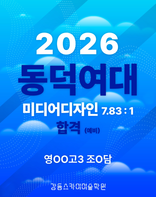 <2026 수능4등급 동덕여대합격!!>강동구미술학원 강동스카이미술학원