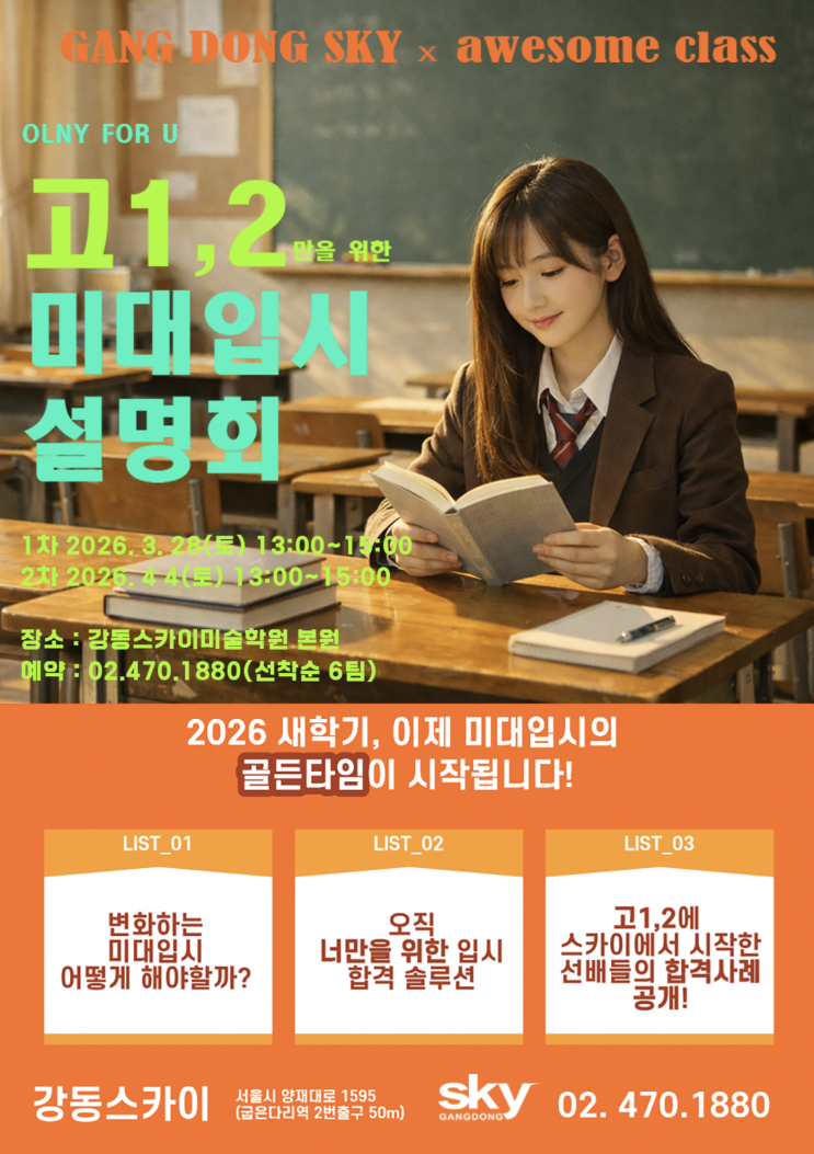 <2028 학년도 미대입시 설명회!!>강동구미술학원 강동스카이미술학원