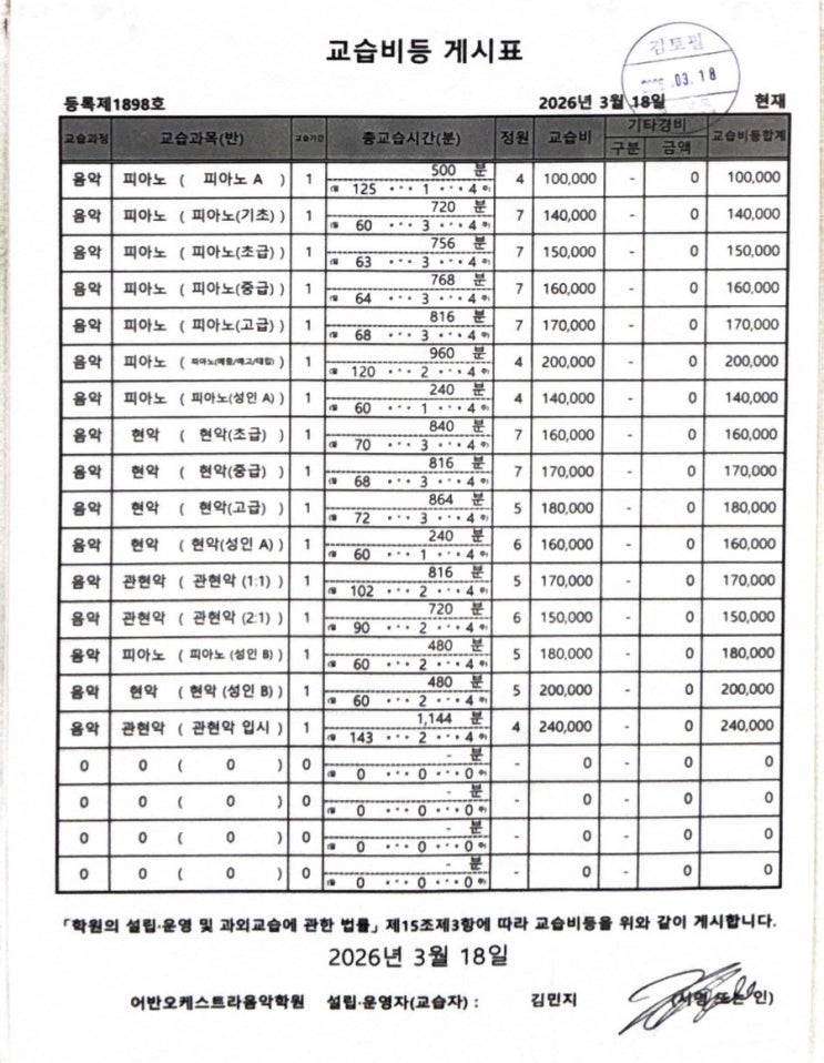 2026 교습비