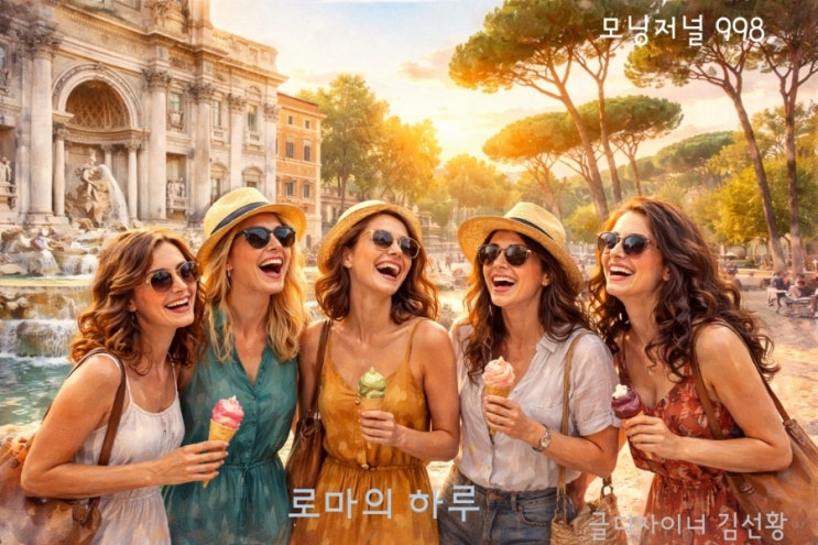#로마#오드리될뻔 #오늘의글감 #글디자이너_김선황 바람도, 나무도, 자스민 향도.. 딱 알맞았습니다. * 2026년 2월 27일 금요일 모닝저널 998 로마, 30년을 건너 도착한 도시 시오노 나나미의 『로마인 이야기』를 읽고 언젠가 가보리라 마음에 품었던 도시, 로마에 드디어 닿았습니다. 무려 30년이 걸렸습니다. 거대한 역사의 무게를 먼저 떠올렸지만, 막상 제 마음을 사로잡은 것은 성 베드로 대성당보다도 트레비 분수의 물빛이었습니다. 사진으로 수없이 보았으나, 실제로 마주한 분수는 상상보다 훨씬 크고 눈부셨습니다. 주어진 시간은 고작 30분, 아이스크림을 먹으며 동전을 바꾸고, 뒤로 돌아 소원을 던지듯 동전을 던졌습니다....... <img src="https://blogthumb.pstatic.net/MjAyNjAyMjdfNTIg/MDAxNzcyMTMzODUyNjU4.vdxd1svL9x1fTIjKEHgsHxMhGN1gh8ZtJbffSYOoZPIg.R3vzUo99DZp6d98fZuEbI55oeoR1ahwt4uRp1LFORMAg.JPEG/900%A3%DF20260226191240.jpg?type=s3" />