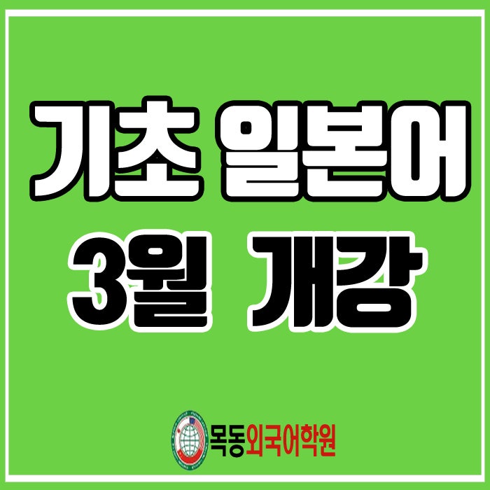 ▼▼▼▼▼▼▼▼▼▼▼▼▼ 기초 일본어반 3월 4일 개강예정 월 , 수 오후 7:00 ~ 8:00 ▲▲▲▲▲▲▲▲▲▲▲▲▲ 안녕하세요 목동외국어학원입니다 모두 즐거운 설연휴 보내셨나요? 2월은 특히나 짧아서, 벌써 3월이 다가오고 있습니다. 다가오는 3월을 맞아 새로운 마음으로 일본어 공부를 하시려는 분들을 위해 3월초 기초 일본어반을 모집합니다 최근에 일본어에 관심이 생겼다! 원래 관심이 있었지만 어떻게 시작할 지 엄두가 안난다! 혼자 해보니 좀 어려울 것 같다! 아직 실천하지 못하고 계신 분들을 위해! 호불호없이 많은 분들이 좋아해주시는 이지영선생님께서 기초반을 진행해주실 예정입니다 히라가나 글씨부터....... <img src="https://blogthumb.pstatic.net/MjAyNjAyMTlfMTk0/MDAxNzcxNDkwMDczMzgw.cpbb2ZRtnk5dzvJuHjnLOqHb8U_31kqwLDLZyHz0gp8g.wXVMbdV1sQUinwRtyElDnsgXs59JZF5V049UKOo7fVUg.JPEG/%B1%E2%C3%CA-3%BF%F9.jpg?type=s3" />