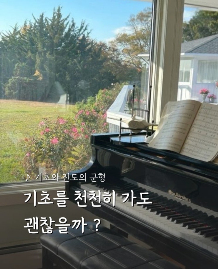 피아노를 배우다 보면 한 번쯤 이런 질문을 하게 됩니다. "기초를 천천히 가도 괜찮을까요?" 답은 네,괜찮습니다. 아니,오히려 더 좋을때가 많아요. 처음부터 속도보다 이해를 선택하면 ✔️틀리는 횟수가 줄고 ✔️연습에 대한 스트레스가 줄어들며 ✔️혼자서도 연습할 수 있는 힘이 생깁니다. 반대로 기초를 이유로 같은 단계에 너무 오래 머무르거나 변화 없는 반복만 이어진다면 흥미와 성취감은 오히려 쉽게 떨어질 수 있어요. 그래서 중요한 건 **속도와 멈춤이 아니라 '균형'**입니다. 기초를 천천히 간다는 건 뒤쳐진다는 뜻도 아닙니다. 흔들리지 않는 바탕을 만드는 시간이예요. 손 모양,손몬 사용,악보 읽기,박....... <img src="https://blogthumb.pstatic.net/MjAyNjAyMDdfMjMy/MDAxNzcwNDcxNTg3NDkw.OAh7J_3Ym8OiDdqq_PD8n7jRLhSOi20IIj_IdsKdqEAg.6ZbC2WYa1Smv5r1aQSX4SJEkByFIrO0n2HEohJP1jQog.JPEG/900%A3%DF1770471366366.jpg?type=s3" />