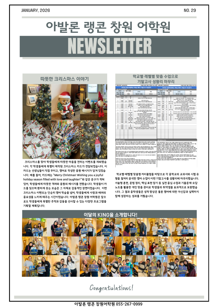 학원 일상을 담은 NEWS LETTER/창원 상남동 영어학원/아발론 랭콘 창원 어학원