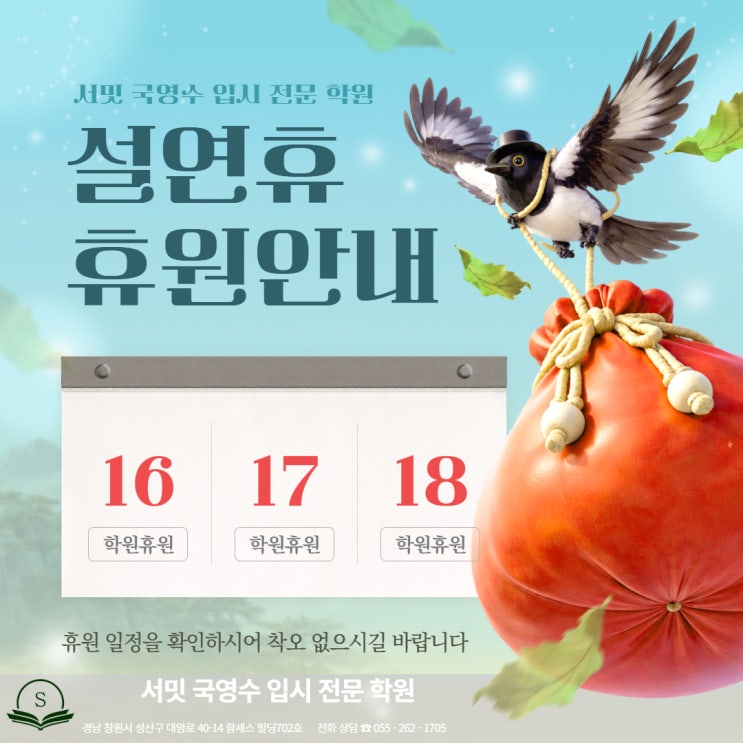 2026년 설 연휴 휴원 안내, 창원 성산구 남양동 서밋 국영수 입시 전문 학원