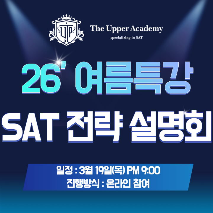 [설명회] 3/19(목) SAT 고득점 전략 설명회 & 2차 얼리버드 기간 공개