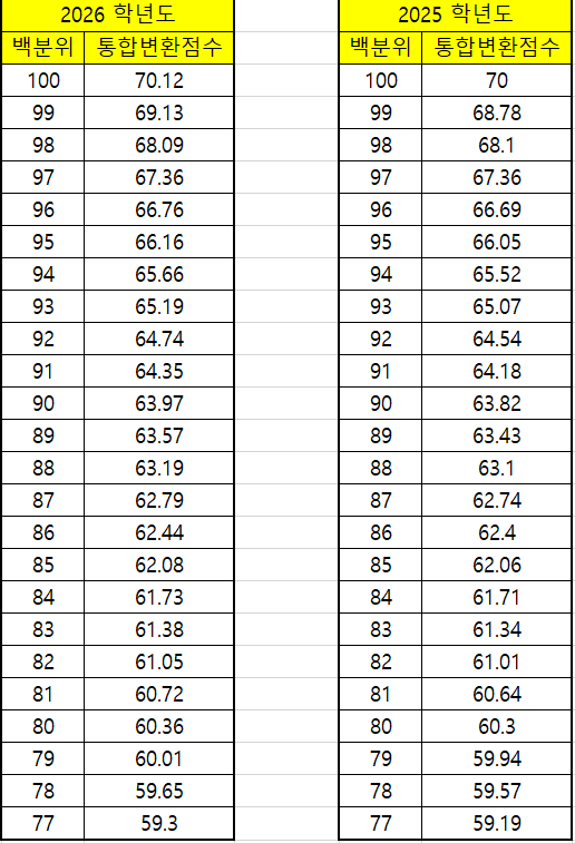 연세대 2026학년도 사탐/과탐 통합변환점수 발표