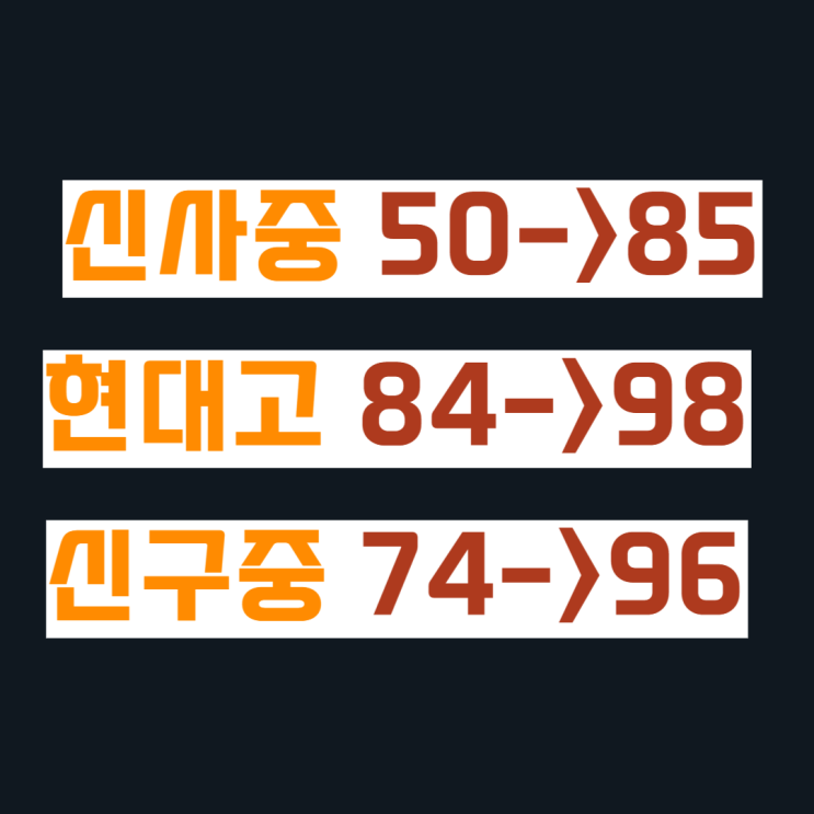 신사중 50→85, 현대고 84→98, 신구중 74→96 _성적이 증명합니다.