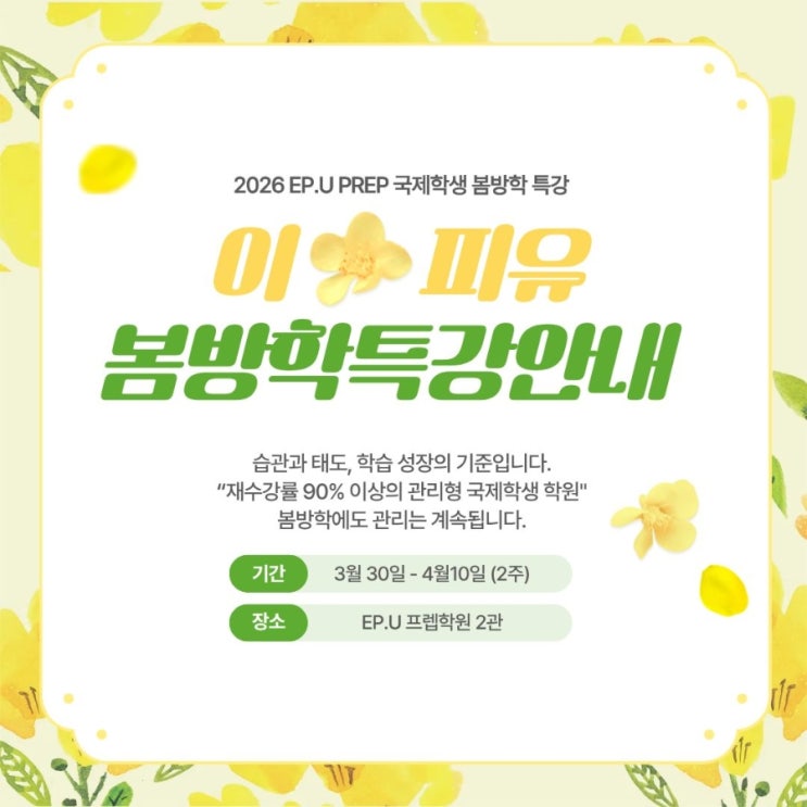 <이피유(EP.U)프렙> 이피유 국제학생 봄방학특강안내 (3월30일-4월10일)