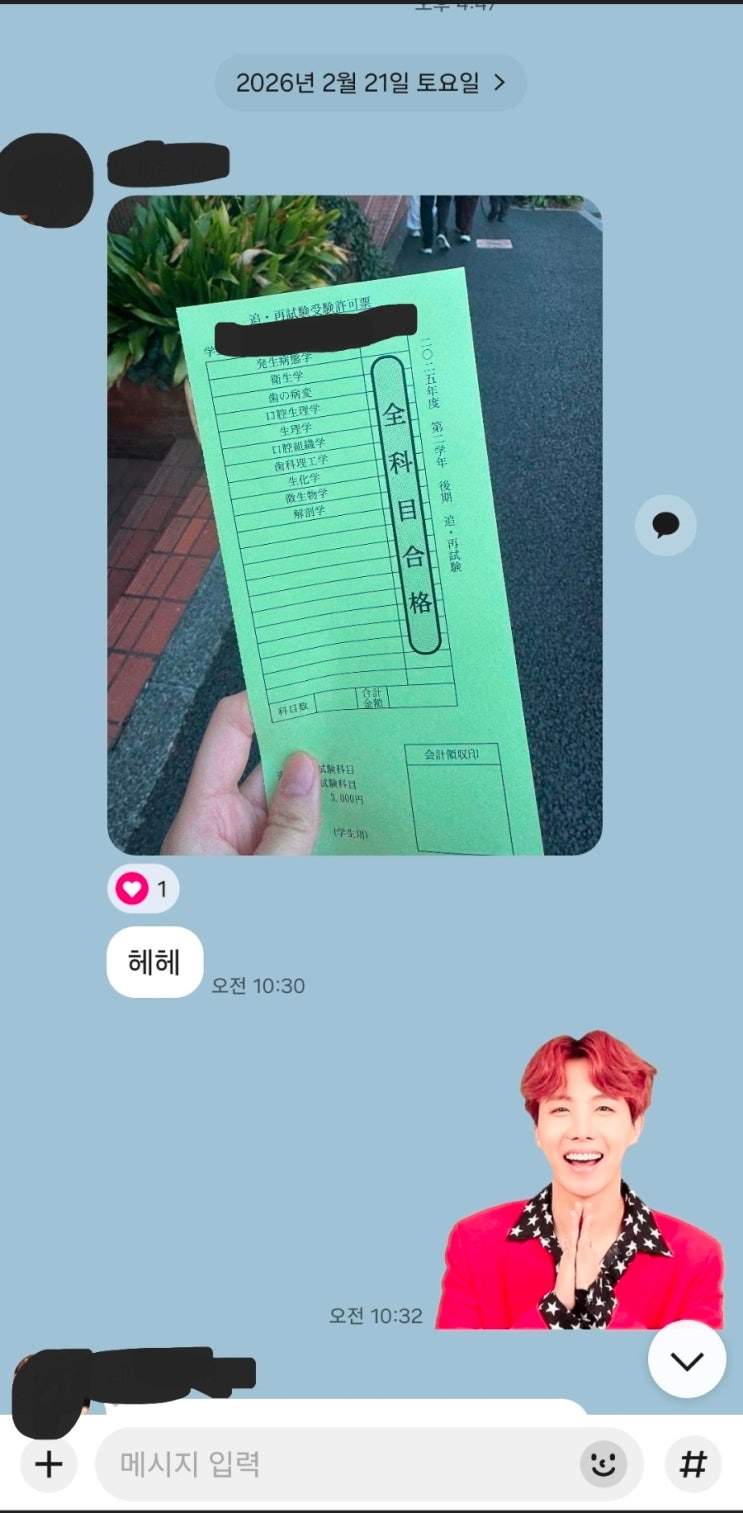 일본 현지 의과·치과대학에서 치열한 한 학기를 보낸 우리 정통의 자랑스러운 제자들이 '전 과목 합격(全科目合格)'이라는 최고의 성적표를 들고 고국으로 돌아오고 있습니다! *비전공자도, 유학생도 해낼 수 있다는 것을 증명하다 구강위생학, 구강생리학, 해부학 등 이름만 들어도 아찔한 전문 의학 과목들을 당당히 통과해낸 우리 학생의 노력에 아낌없는 박수를 보냅니다. 일본 메디컬 대학의 학사 일정은 상상 이상으로 타이트합니다. 하지만 정통어학원에서 탄탄하게 기초를 다지고 입학한 우리 학생들은 현지 학생 들 사이에서도 당당히 본인의 실력을 입증하며, 유학생이라는 한계를 넘어 전문 의료인으로 거듭나고 있습니다. ....... <img src="https://blogthumb.pstatic.net/MjAyNjAzMDFfMjc1/MDAxNzcyMzM2MTgxNTQ0.2n9qRfM9d4qsbTW9IFwieuD5FDfbpduVas9mD8U85pIg.Y2huAzrAkFqf1pQNMkTYmnS398kzWp0IS9Nd_npRa8Ig.JPEG/900%A3%DFScreenshot%A3%DF20260301%A3%DF011737%A3%DFKakaoTalk.jpg?type=s3" />