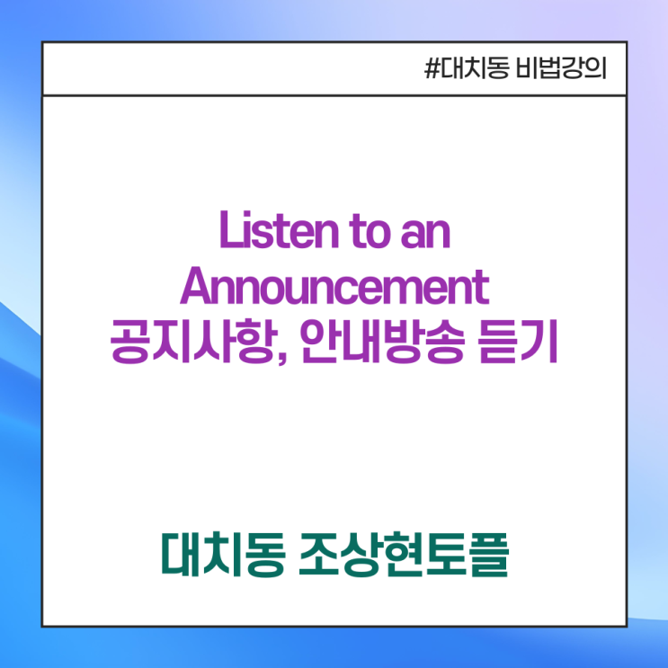 [송도 토플학원 TOEFL Listening] 2026년 개정 토플 리스닝, Listen to an Announcement 공지사항, 안내방송 듣기 (공지 듣고 문제 풀기)
