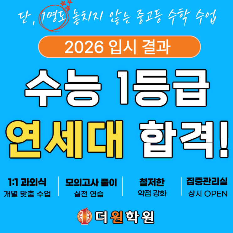 대치고등수학학원 서울고3 연세대 합격! 3년 더원학원 재원생의 공부 과정 대치고등수학학원에서 3년 간 공부하고, 정시로 올해 연세대학교에 입학한 서울고등학교 졸업생이 있습니다. 어떠한 과정으로 흔들리는 수리영역 2-3등급을 이겨내고 수능에서 1등급을 받을 수 있었는지 자세히 전달해 드리겠습니다. 1. 3년의 신뢰와 데이터가 만든 '정시'라는 승부수 고등학교 3학년 진학을 앞두고 자녀의 뒷모습을 바라보는 부모님의 마음은 복잡하기만 합니다. 특히 내신 성적만으로는 목표하는 대학의 문턱을 넘기 어렵다는 현실을 직시할 때, 불안감은 확신 없는 방황으로 이어지곤 합니다. 서울고등학교의 한 학생 역시 고등학교 2학년....... <img src="https://blogthumb.pstatic.net/MjAyNjAyMTFfMTc2/MDAxNzcwNzg5OTAwNjgz.6vzK-pGbhCnyAHo9SXdP-_tfZeCNt0W-Cva0FxGsuw8g.JP4iVYRelJIDGpv9nlx2s_EnPlNJfKJcYXmaZLKXIcwg.PNG/260211_%BC%AD%BF%EF%B0%ED_%BF%AC%B4%EB_%B0%F8%BA%ED_%B4%EB%C4%A1%B4%F5%BF%F8_%281%29.png?type=s3" />