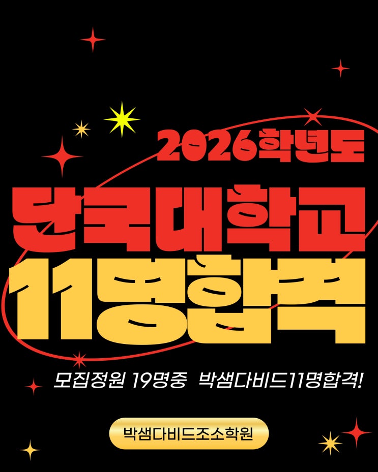 2026학년도 단국대학교 조소과 합격자 안녕하세요. 박샘다비드조소학원 입니다. 2026학년도 단국대학교 조소과에 11명이 합격하는 놀라운 합격소식이 전해왔어요! 정원 19명 중 58%합격점유~!!! 2026학년도 단국대학교 조소과 무려~~ 11명 합격 모집정원 19명중 11명 합격! 정원의 58%가 박샘다비드조소학원 학생 실기력을 다시한번 입증하였습니다. 높은경쟁률은 우리 박샘다비드조소학원 학생들에겐 단순숫자 일 뿐 이네요~~ㅎㅎ 이번 2026학년도 단국대학교 조소과에 합격한 우리 학생들 모두 진심으로 축하합니다. 그리고, 물론 이번에는 원하는 결과에 닿지 못한 친구들도 있지만, 그동안 묵묵히 이어온 노력과 시간은 결코 헛되지 않았습니....... <img src="https://blogthumb.pstatic.net/MjAyNjAyMTFfMTg5/MDAxNzcwNzk0MDk5OTA0.H85uTzdCg2q7qgd1Opwv7S7SUvHLEVVhmto0cfHm-lgg.ugluEQZmgPS1Y3Tb8tVAqr2bV19UZnDth_i2bRnu5H0g.JPEG/%B4%DC%B1%B9%B4%EB%C7%D5%B0%DD.jpg?type=s3" />