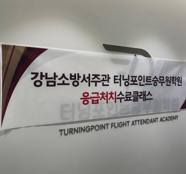 벌써 3월이 다가왔네요. 시간 참 빠르죠? 최근 터닝포인트에서 강남 소방서 주관으로 응급처치 수료 클래스를 진행하였습니다. 소방관 분들이 직접 학원에 방문해 교육을 진행해주셨던 특별한 시간이라 소식 공유해보려 합니다. 승무원은 기내의 안전요원이라고 불리는 만큼, 응급처치 능력은 필수인데요. 항공과 입시에서도 안전에 관한 질문이 빈번하게 나오기에 터닝이들에게 안전에 대한 대처능력을 길러주고자, 또 답변에 활용할 수 있도록 경험을 만들어주고자 교육을 진행하게 되었답니다. 응급처치 클래스는 꼭 알아야 하는 이론 교육뿐만 아니라 실제 상황을 가정한 실습 중심 교육으로 구성되어 현장감 있게 진행되었습니다 심폐소....... <img src="https://blogthumb.pstatic.net/MjAyNjAzMDFfMjAg/MDAxNzcyMzQyMjc5OTk0.C7aR9ib5Km-CkhxOqqq89BOTCA4cKXROqRWzQtoLLoUg.I2wx2S9Do4ealRgn_WrgZRo9Ixs235CnYmcjyNk7q6kg.JPEG/KakaoTalk_20260228_192236478_23.jpg?type=s3" />