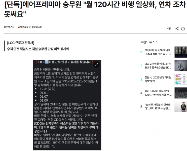 에어프레미아 내부상황, 현직들 괴로운 비행시간, 이미 안내했는데 기사가 나왔어요. 월급은 많아요