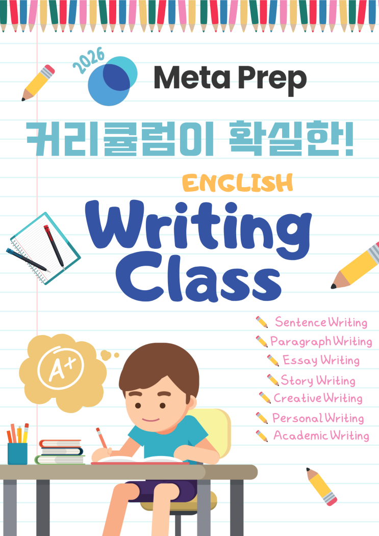 ♡ 커리큘럼이 확실한 메타프랩 라이팅 클래스!! 대상 : 유치부, 7세, 초등친구들 (중등 친구들 클래스 별도) 국제학교, 공립사립학교 친구들 글을 쓰기 싫어하거나, 더 잘쓰고 싶은 친구들 위한 라이팅 수업이에요! 한 문장들이 모여 여러 생각이 되고, 아이의 언어가 됩니다. 언어가 쌓여 스피킹과 라이팅으로 이어지게 됩니다 :) 여러 문장들을 선생님과 같이 학습하고 자신만의 언어를 찾아가는 수업이에요! 작은 질문에서 출발해 탐구와 리서치를 거쳐 브레인스토밍이 끝나고 라이팅을 쓰게 되고 하나의 발표까지 완성할 수 있는 수업이에요 :) 아이들이 이미 알고 있지만, 써보지 않은 여러 단어들과 표현들을 사용하면서 학습하고, 그래머....... <img src="https://blogthumb.pstatic.net/MjAyNTExMjZfMTUw/MDAxNzY0MTMyMzU2NjM4.9lJp4YlCjXnE68L2BauSuklbih__ST4Pm_PLs6XrZG8g.2fY3lyta9TO-HML3r-cX_728pW6iUaMBcDrtMHM-89Ig.PNG/Writing_Class.png?type=s3" />