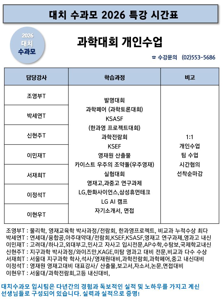 특목고·자사고·외고, 어떻게 선택해야 할까? — 2026 경쟁률이 말해주는 ‘진짜 기준’ “애가 영어를 좋아하긴 하는데… 외고가 맞을까요?” “요즘 자사고가 더 좋다던데…” “대입 바뀐다고 하던데… 도대체 뭘 기준으로 봐야 하죠?” 상담을 하다 보면 학부모님들께서 가장 많이 하시는 말입니다. 그리고, 솔직히… 정답은 계속 바뀌고 있습니다. 그런데 어제 발표된 서울 고입 경쟁률이 앞으로 우리가 어디로 가야 하는지 꽤 분명한 힌트를 주었습니다. 고교 선택 기준이 바뀌고 있습니다. 서울 지역 외고 경쟁률은 상승, 대부분의 자사고는 하락했습니다. 이건 단순한 수치의 변화가 아닙니다. 학부모님들이 이미 대입의 변화를.......