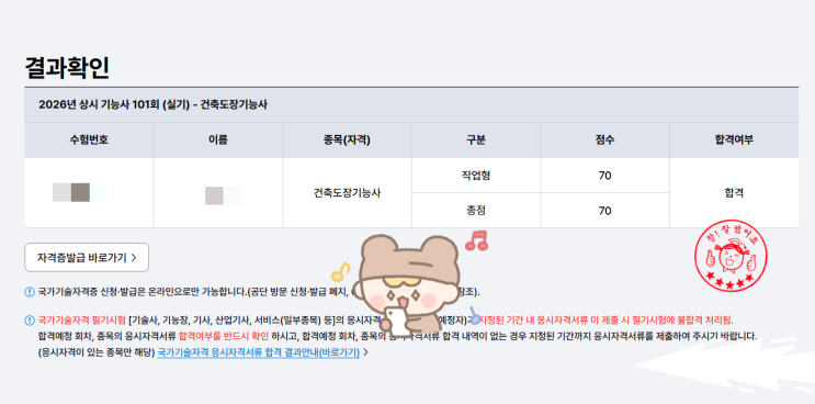 2026년 첫 건축도장기능사 상시시험 합격자발표의날이네요!