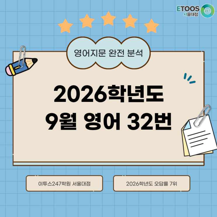 [이투스247학원 서울대점] 2026 9월 평가원 영어 오답률 7위 32번 지문 분석