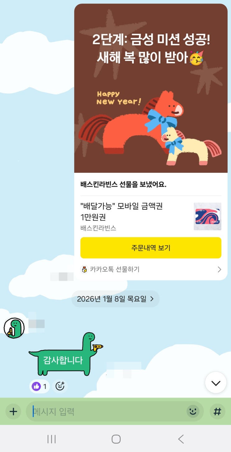 세상에 빛나지 않는 별은 없다! 안녕하세요. 진해 국어, 수학 학원 올빛국어수학입니다. 2단계: 금성 미션을 달성한 학생이 등장했습니다! 사실 미션을 달성한지는 꽤 오래 되었는데 우리 학생이 소원을 정하지 못하다가 이번에 결정을 했네요! 학생이 희망한 선물은 배스킨라빈스 입니다. 겨울에 먹는 아이스크림이 또 별미죠. 맛있게 먹어~♥ 모두 새해 복 많이 받으세요. 이상 올빛국어수학이었습니다. 감사합니다. <img src="https://blogthumb.pstatic.net/MjAyNjAxMDhfMTEx/MDAxNzY3ODUyNjYwNDAx.kXwSq2Mbuu-kBA30n2Q-QJAsraCevoTduJeP69kpPUAg.2_xckuloNfhAiVRpqhYEzsnXGgarAZTmMjifpNm-h98g.JPEG/Screenshot_20260108_150415_KakaoTalk.jpg?type=s3" />